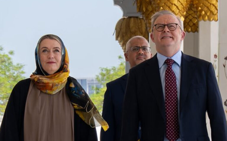 Header image: Mr Albanese and Ms Haydon visit a mosque in Abu Dhabi last month (PMO).