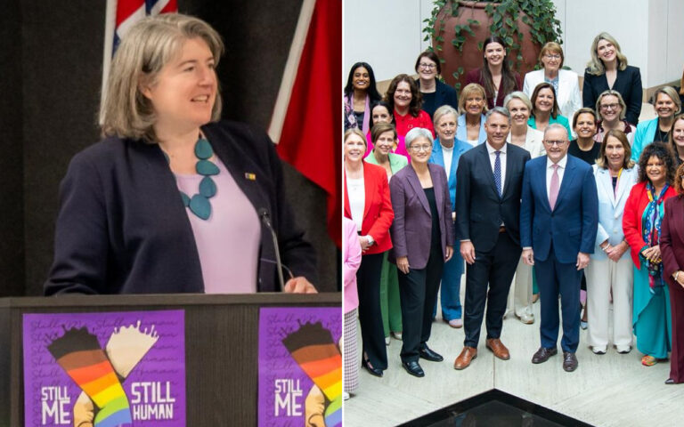 Header image: Left, Meghan Quinn (LinkedIn). Right, Anthony Albanese and Richard Marles with female Labor MPs (PMO).