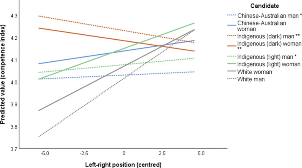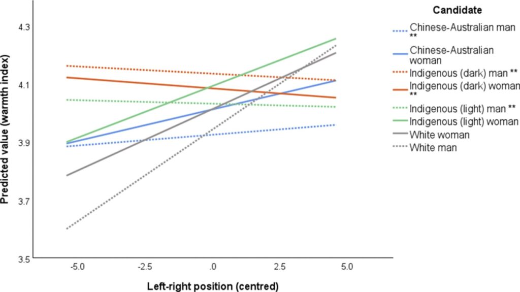 They also expected to find that the more right-wing a respondent was, the more poorly they would rate indigenous candidates on both warmth and competence, due to studies showing that “right-wing ideology predicts a considerable increase of out-group hostility in the case of ethnic prejudices”.