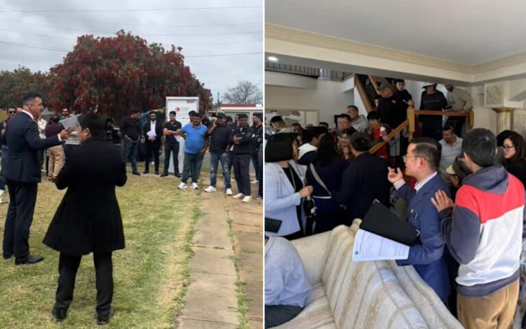 Header image: Left, an auction in Adelaide in October (Hardeep Singh – TikTok). Right, an auction in Queensland in August (Place Sunnybank).