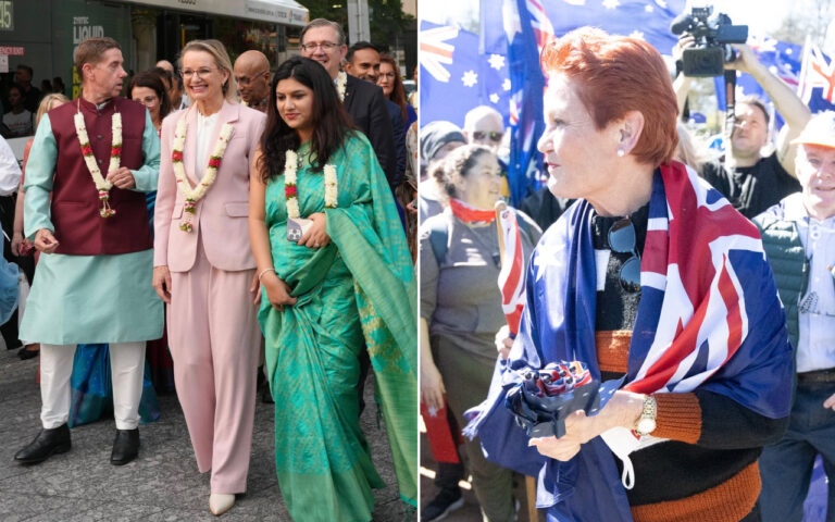 Header image: Left, Ms Ley at a Diwali event in Brisbane this month. Right, Ms Hanson at a March for Australia rally in Canberra on August 31 (Facebook).