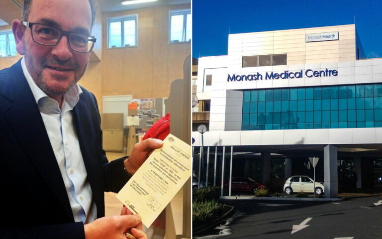 Header image: Left, The last photo Daniel Andrews posted on social media, after voting Yes to the Voice in October 2023. Right, Monash Medical Centre (Wikipedia – Folfox – Own work, CC BY-SA 3.0).