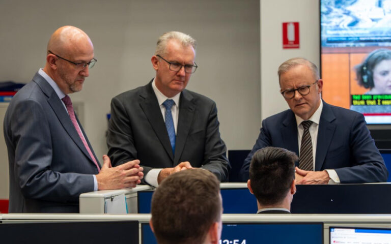 Header image: ASIO boss Mike Burgess, Home Affairs Minister Tony Burke, and Prime Minister Anthony Albanese (PMO).