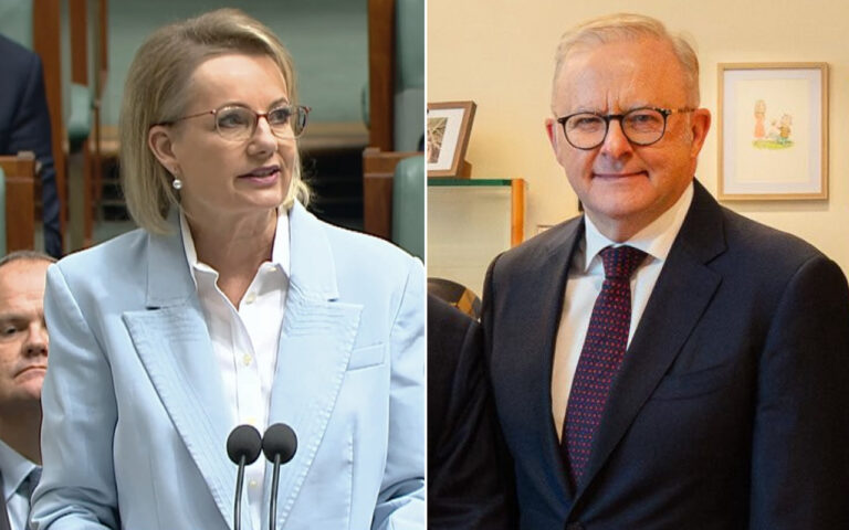 Header image: Left, Ms Ley in parliament on Monday. Right, Mr Albanese (PMO).