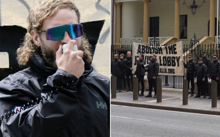 Last month Mr Davis was with “offensive behaviour” over a peaceful counter-protest at a far-left rally in Melbourne, in January he was arrested in Adelaide and is still fighting a “Nazi symbol” charge over a belt buckle with an eagle on it, and in December his home was raided over a protest where the NSN displayed a banner saying “Jews hate freedom”.