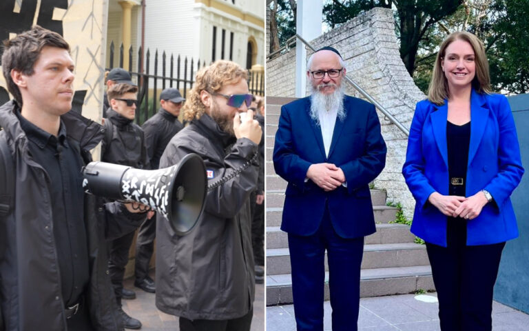 Header image: Left, The NSN in front of NSW Parliament (supplied). Right, Ms Sloane with a rabbi outside a Bondi synagogue (Facebook).