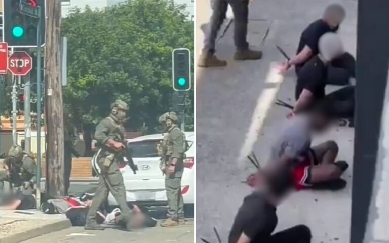 The ADF were seen arresting a car full of what looked to be Middle Eastern men this afternoon in Liverpool, Sydney.