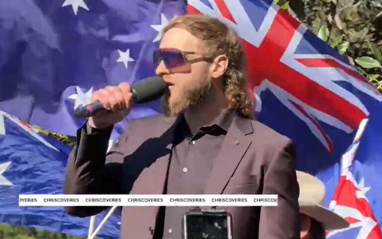 Header image: Former NSN member Joel Davis speaks at the August March for Australia rally in Sydney (Chriscoveries).