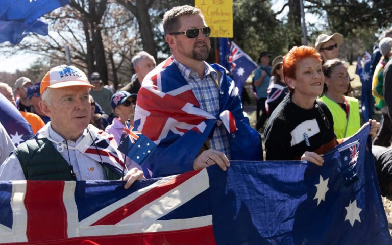 Header image: Pauline Hanson, right, at a March for Australia rally (Facebook).