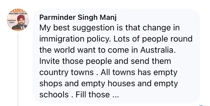 To make matters worse, it has come to light that Singh, prior to gaining the One Nation endorsement while campaigning as an independent, actively campaigned in favour of immigration to “repopulate” rural towns.