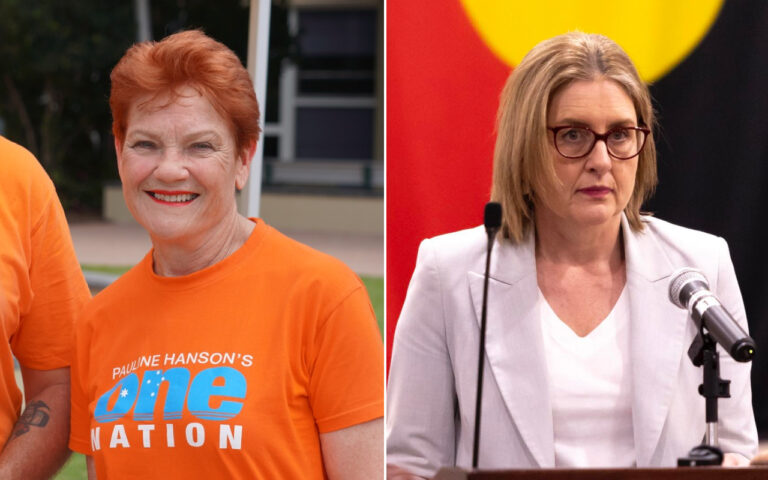 Header image: Left, Pauline Hanson campaigning last year. Right, Jacinta Allan addresses an aboriginal group (Facebook).