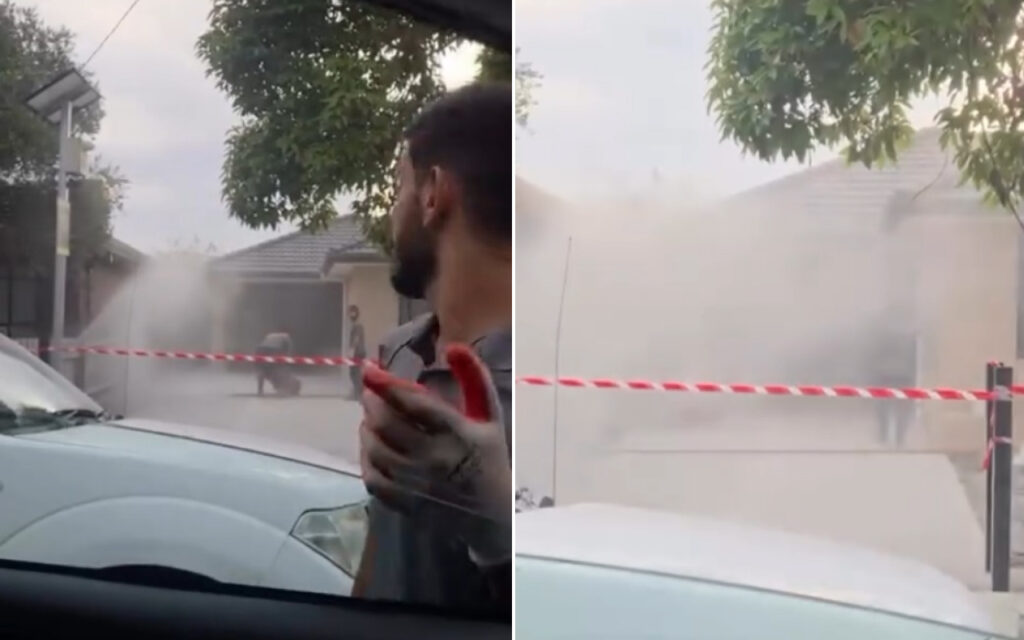 Aussie calls out workers spraying spraying concrete dust into suburban street