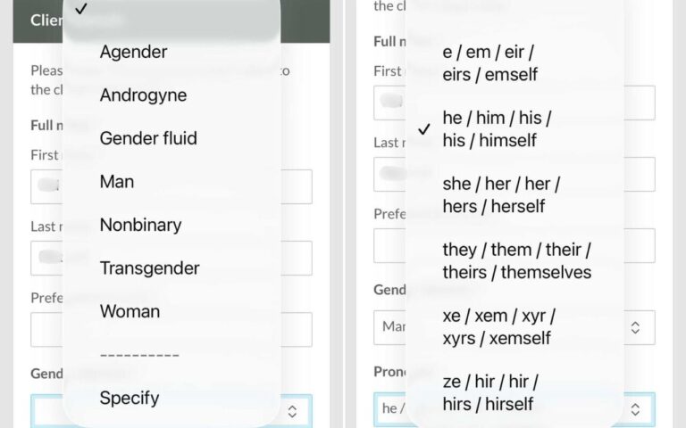 For genders, she had to choose from agender, androgyne, gender fluid, man, nonbinary, transgender and woman, according to screenshots of the form supplied to Noticer News.