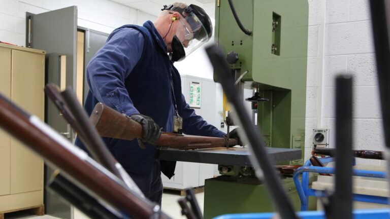 Header image: A police officer cuts a rifle in two after a previous gun amnesty (NSW Police).