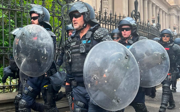 Header image: Riot police arrive at the March for Australia rally in Melbourne (Preston – X).