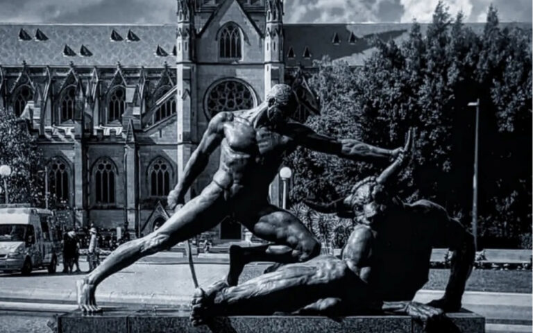 Header image: Theseus restrains the Minotaur – restoring order. Archibald Memorial Fountain, Hyde Park (Edward Law).